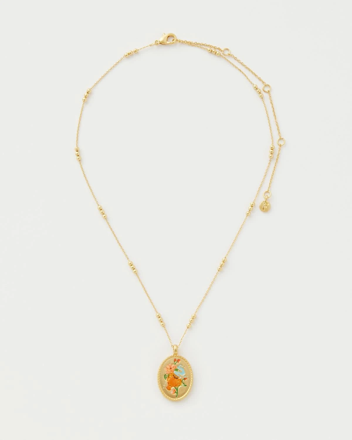 Aquarius (January 20 – February 18): Embrace your uniqueness with our Aquarius necklace. The free-spirited water bearer symbolises your progressive ideas and humanitarian nature, urging you to make a positive impact on the world. All twelve zodiac charms have been inspired by nature, crafted with our traditional style of hand-painted enamel with finely engraved celestial symbols, set in a Victoriana gold plated pendant. Our celestial collection charms have little personalities of their own, symbolising the unique qualities of each star sign, crafted with love and kindness; the perfect talisman to keep close to your heart.