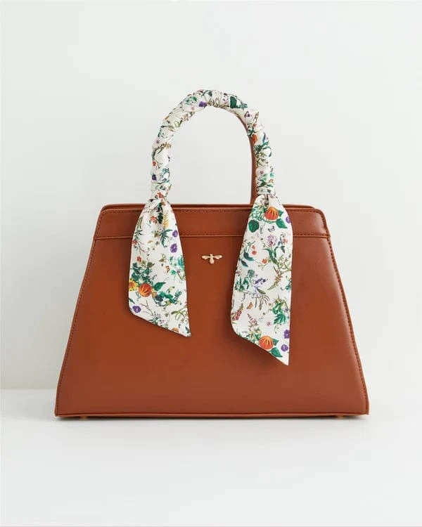Our structured tote handbag comes lined with our enchanting pumpkin print, which also features on a silky twilly scarf wrapped around the handle. Switch between the grab handles and cross-body strap to switch up your look. Crafted from certified vegan leather with ample space and zipped pockets, this structured tote will become your new plus-one for book-store browsing, date nights, and weekend dinners with friends.