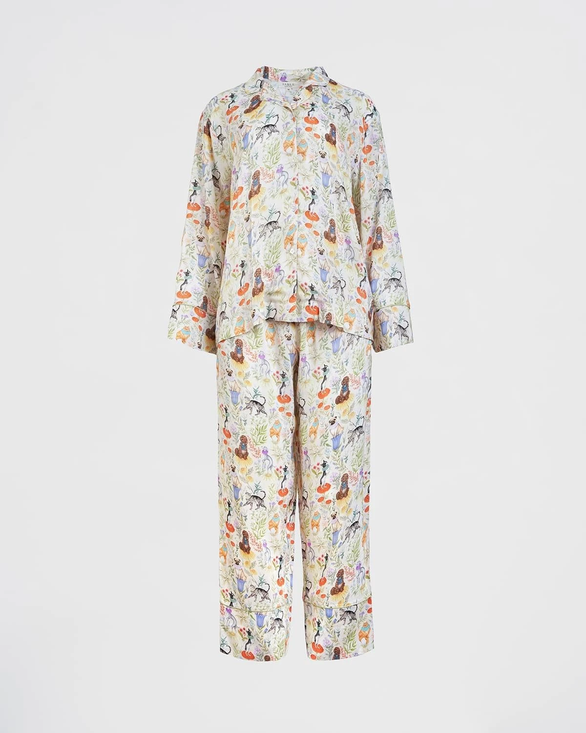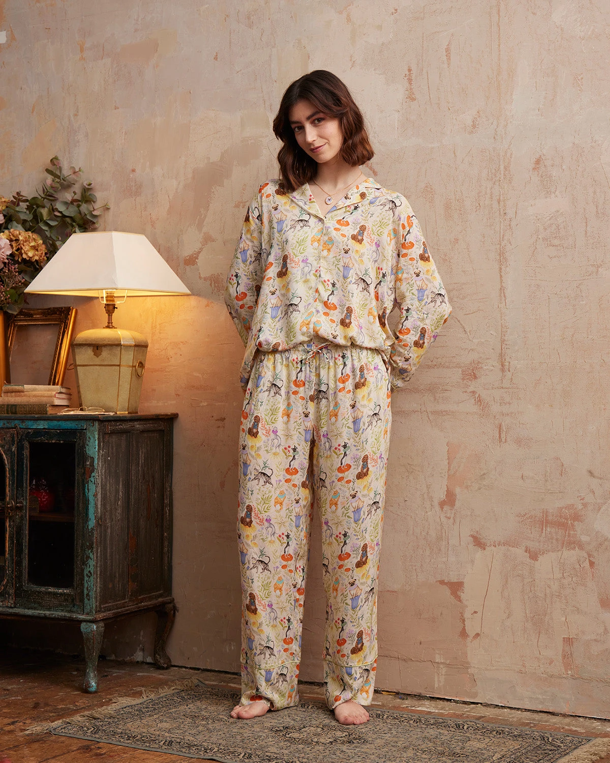 Give your nightwear an elegant update with our long pyjamas from the Pets Portraits collection in collaboration with British artist Catherine Rowe. This indulgent piece of nightwear has been crafted from premium viscose for a lustrous finish that’s dreamy and soft to the touch. A button fastening through the front and an elasticated waistband guarantee a blissfully, comfortable wear to enhance your sleep experience.