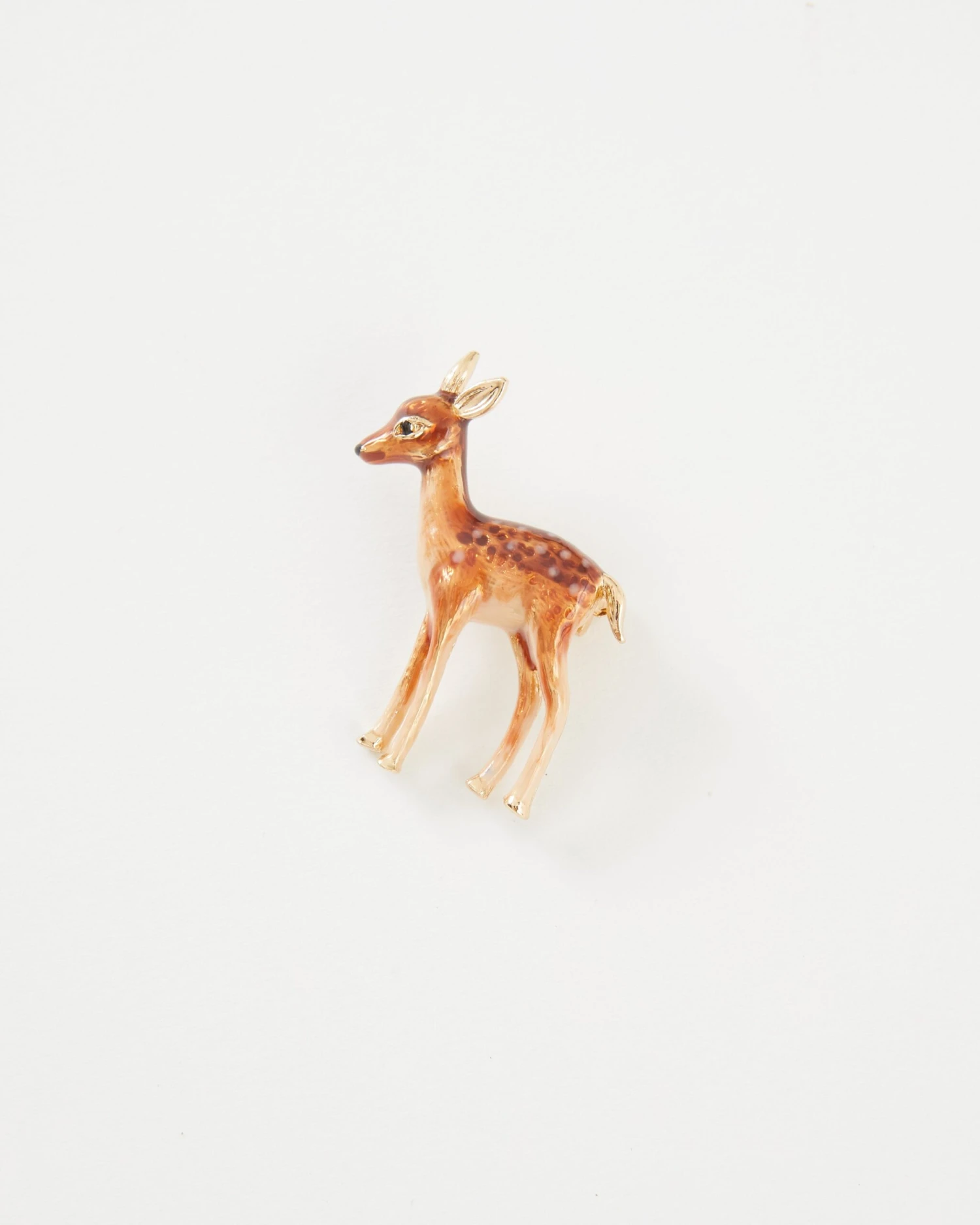 Delicately hand-painted, our graceful fawn charm is sure to evoke nostalgic memories of woodland themes tales. There are many ways to wear a brooch: to fasten a scarf, on a lapel, jazz up a simple jumper, or add to a collar for a modern twist on a classic piece!