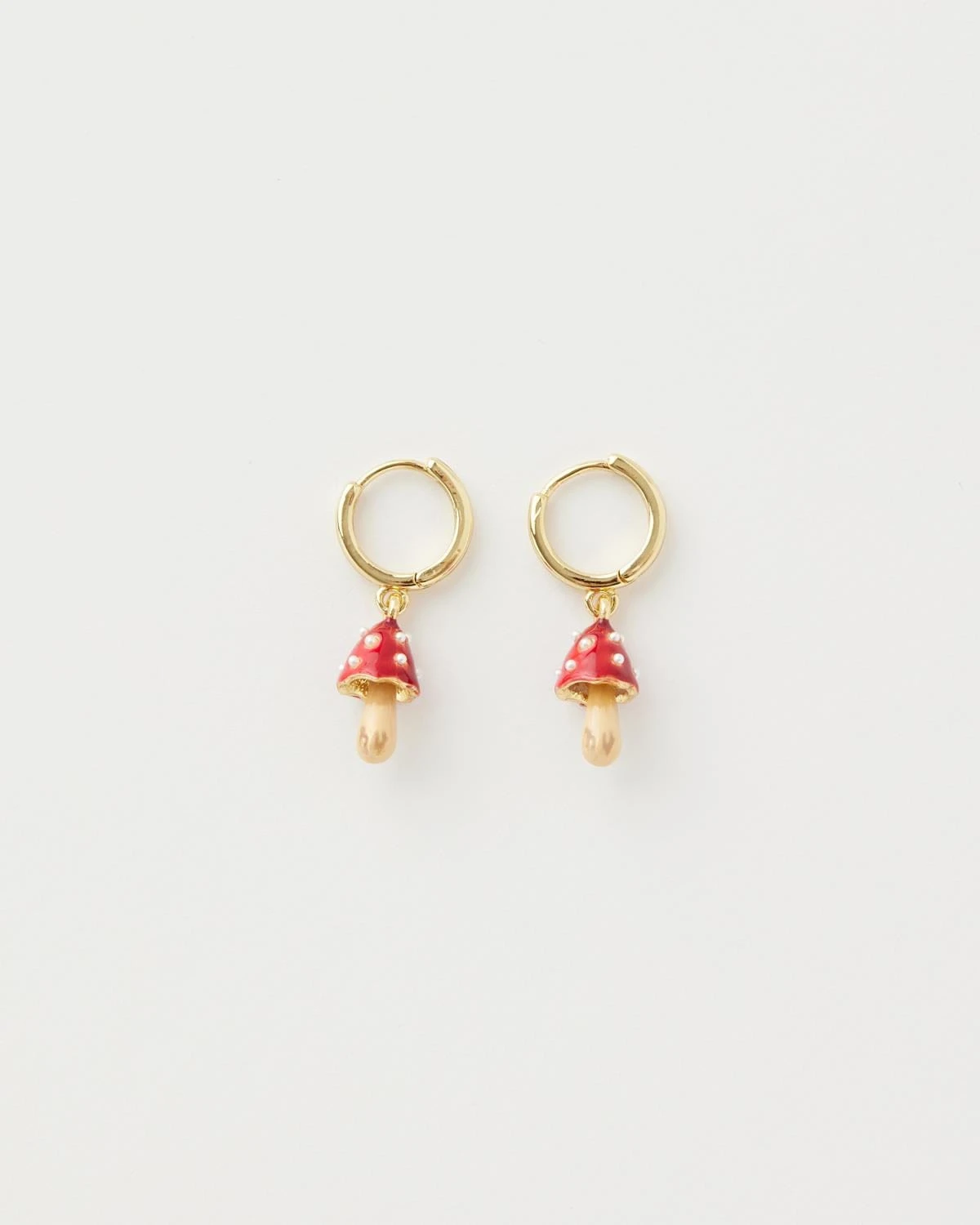 Step into the enchanting world of Fable with our magical Mushroom Charm Hoop Earrings. Crafted with meticulous detail, these earrings capture the allure of the forest, adorned with delicate faux pearls and suspended elegantly from lobe-hugging hoops. Mushrooms, steeped in mysticism and magic, offer a connection to nature’s unseen wonders.