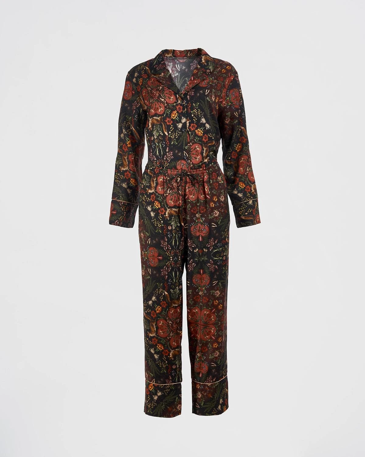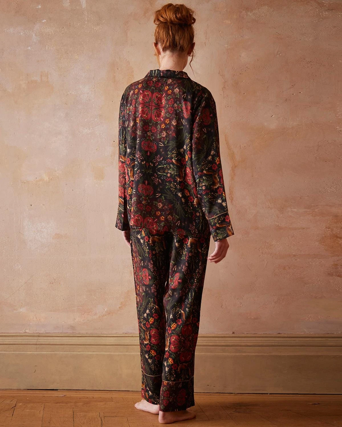 Slip into our Folksy Fox Pyjama Set, printed with a classic tale of nature for dreamy inspiration that will add a touch of whimsical luxury to your fairytale slumber. Sharp tailoring, finished with French seams and gold trims, is carefully crafted from Lyocell, a sustainable fabric made from wood pulp that is kind to sensitive skin. Lyocell’s breathable fibres will keep you cool and naturally comfortable for the sweetest of dreams. Also perfect for lazy days on the sofa, match with the coordinating kimono for a refined, relaxed loungewear edit.