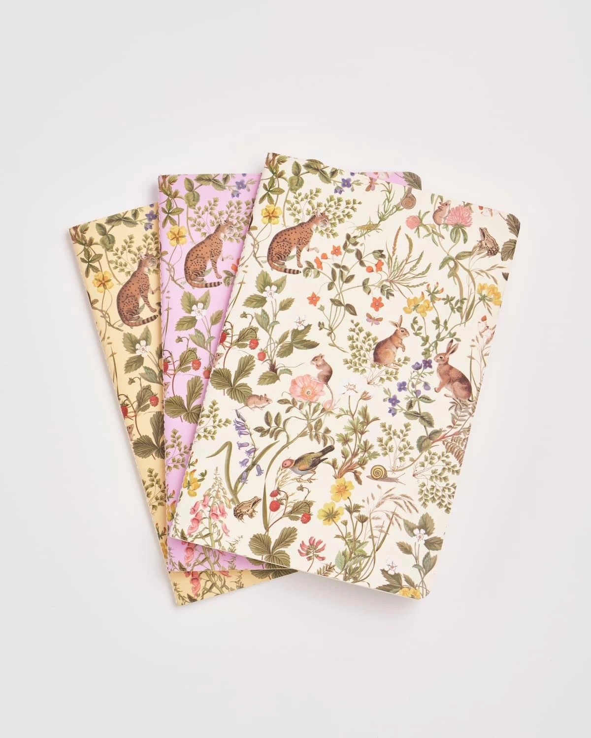 Release your inner Jane Austen by putting pen to paper and create your own literary masterpiece with this set of three notebooks from our beautiful Meadow Creatures collection. The animated print is bursting with whimsical notions of the new season where the animals and creatures are playfully exploring nature. Be inspired by their joyful characters to produce a poetic masterpiece. All our stationary is FSC approved.