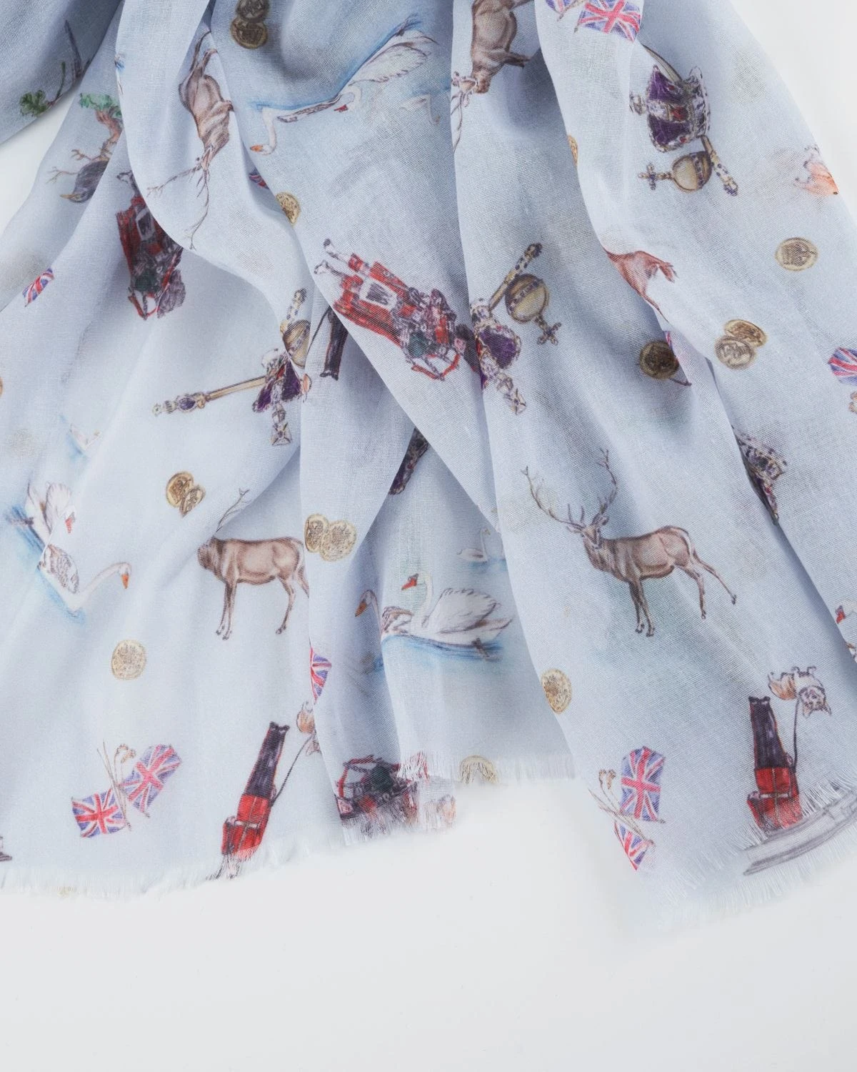 Featuring the most-loved iconography of our royal family and celebrating the golden reign of our dearly departed Queen Elizabeth II alongside the forthcoming King Charles’s Coronation, our Royal Ditsy print will certainly be the jewel in the crown amongst your scarf collection this season.