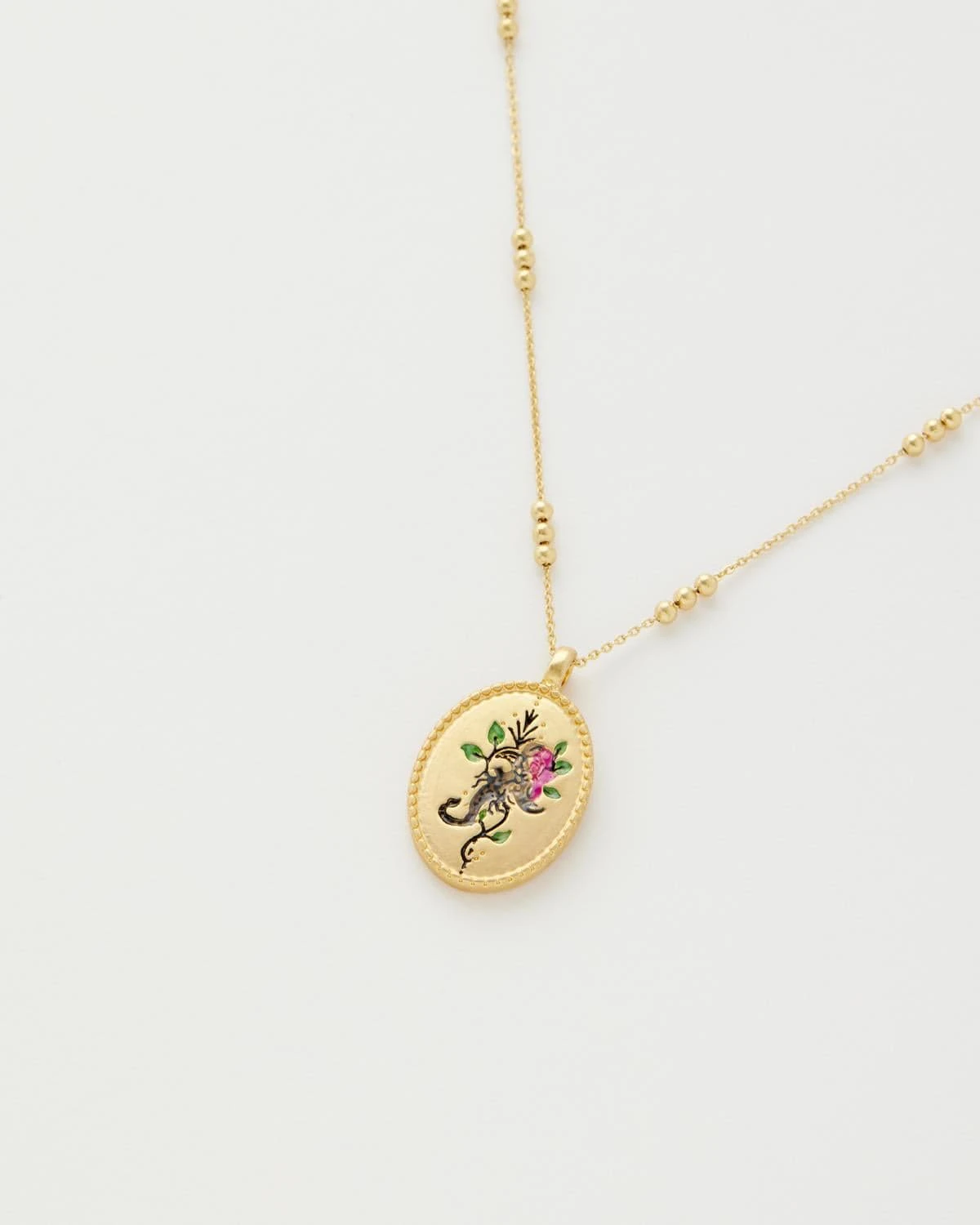 Scorpio (October 23 – November 21): Unveil your mysterious nature with our Scorpio necklace. The powerful scorpion represents your passion and transformative spirit, reminding you of your hidden depths and strength. All twelve zodiac charms have been inspired by nature, crafted with our traditional style of hand-painted enamel with finely engraved celestial symbols, set in a Victoriana gold plated pendant. Our celestial collection charms have little personalities of their own, symbolising the unique qualities of each star sign, crafted with love and kindness; the perfect talisman to keep close to ones’ heart.