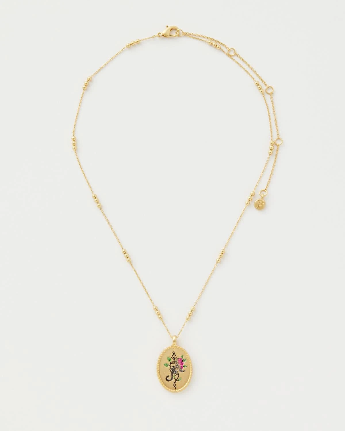 - Charm: 22k gold-plated zinc alloy, enamel; Chain 22k gold-plated brass
