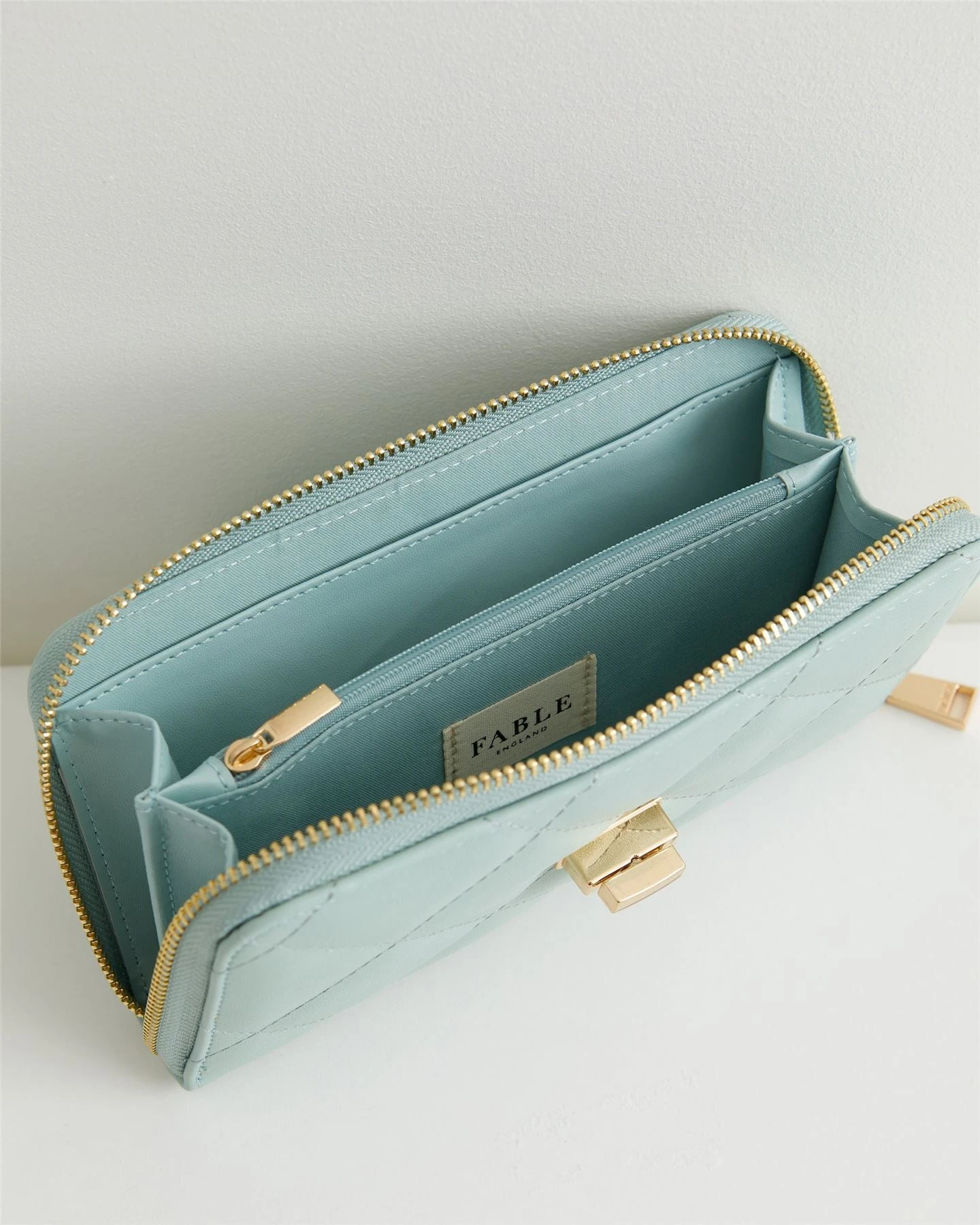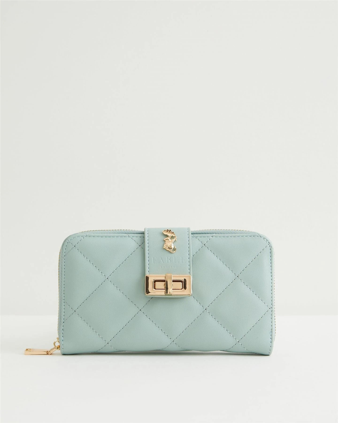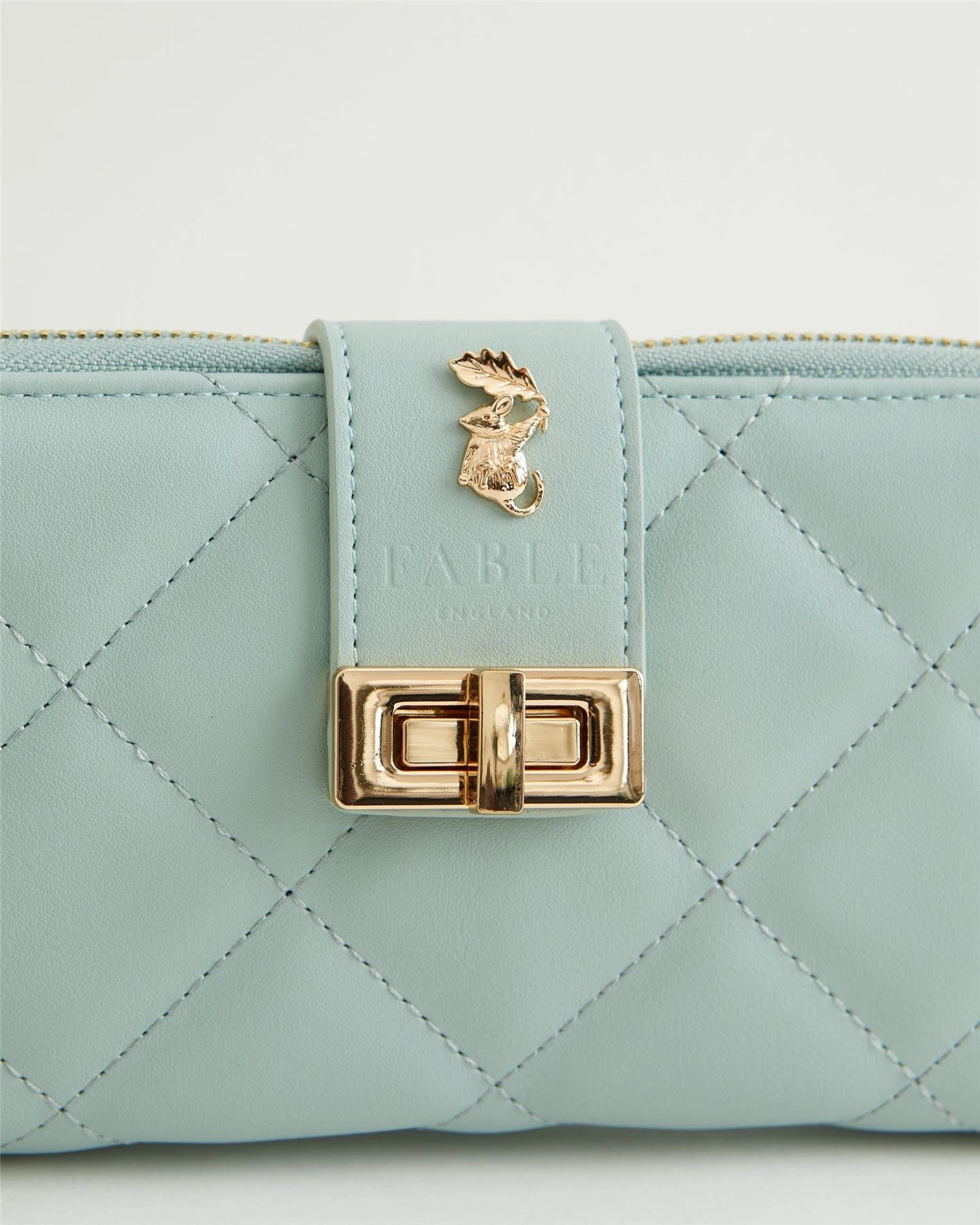 An elevated everyday staple, our large quilted purse features a diamond-quilted construction for a heightened sense of sleek simplicity. This padded patterning in a soft sage colour features elegant gold-toned hardware, including a twist-lock fastening alongside our seasonal icon ‘The Dormouse’. Inside you’ll find plentiful card slots and zipped sections, perfect for storing and organising all of your cards, notes and change.
