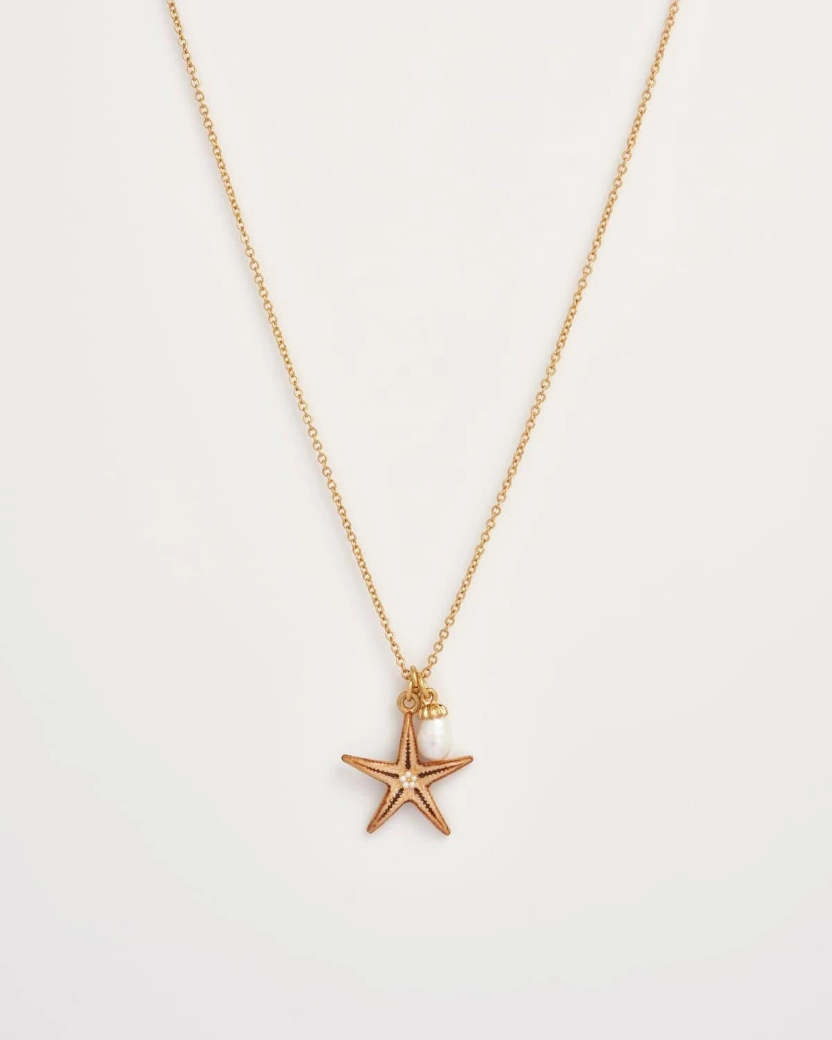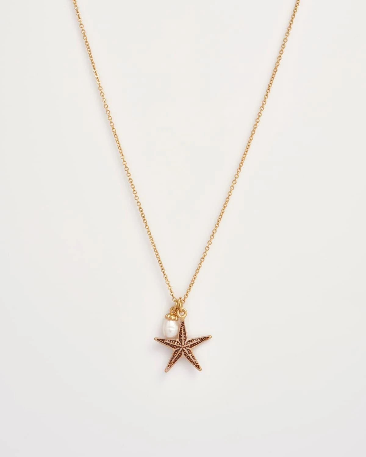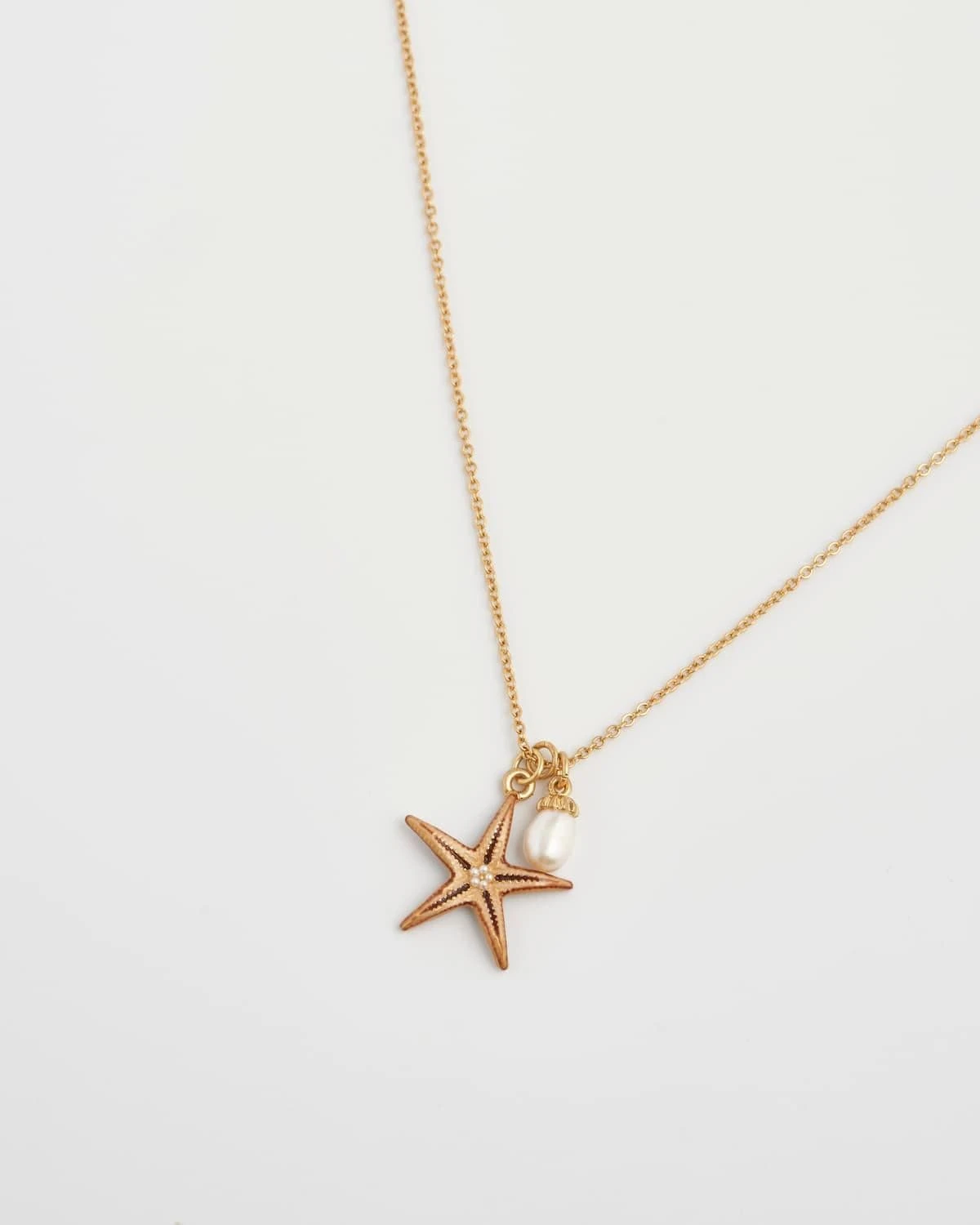 Starfish are often associated with new beginnings, healing and renewal. Start afresh with our delicate Starfish Necklace, where the pearl charm adds an extra level of elevated decadence. This necklace evokes desires to visit the seaside; walk in the waves and have the warm sun on your skin.