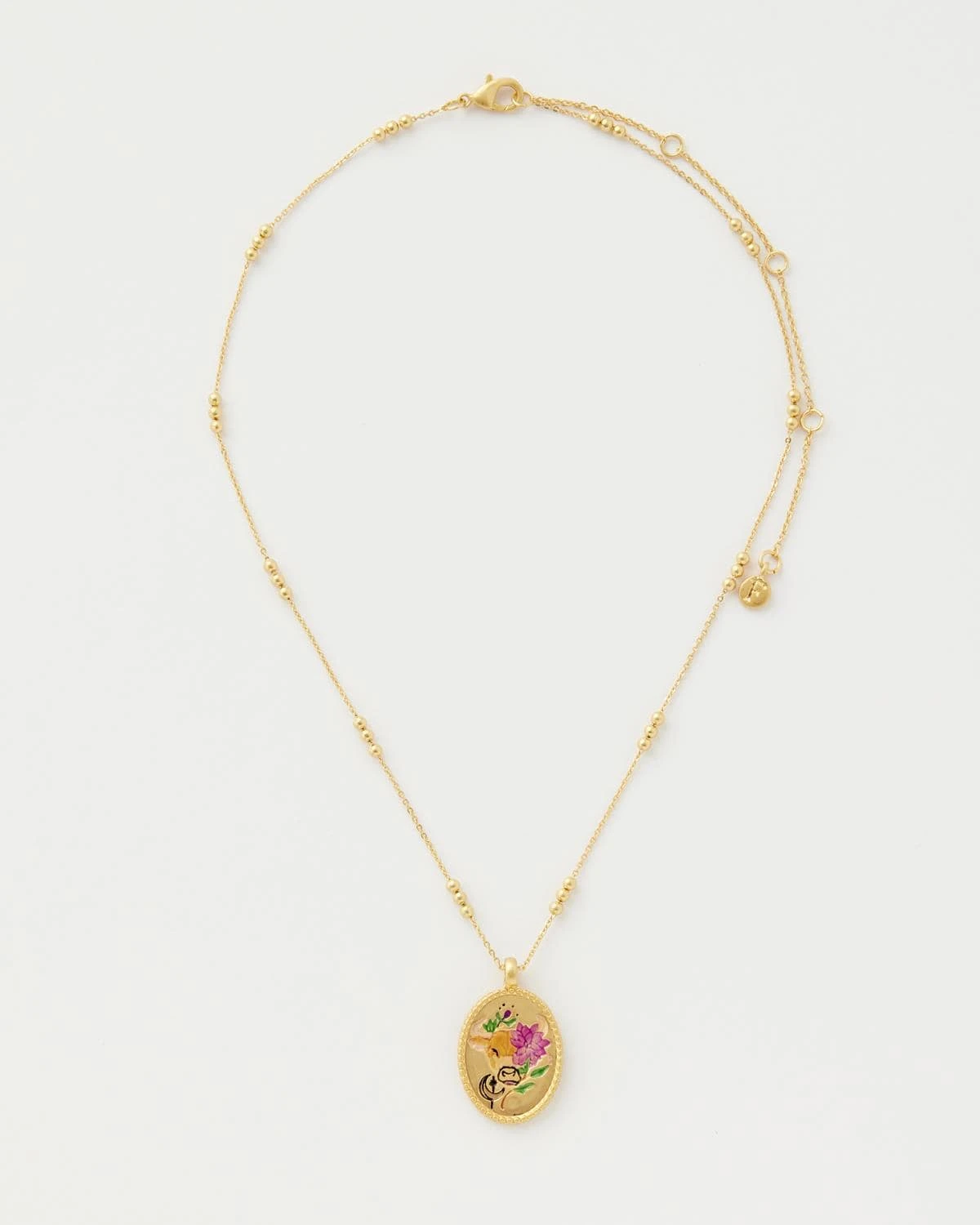 - Charm: 22k gold-plated zinc alloy, enamel; Chain 22k gold-plated brass