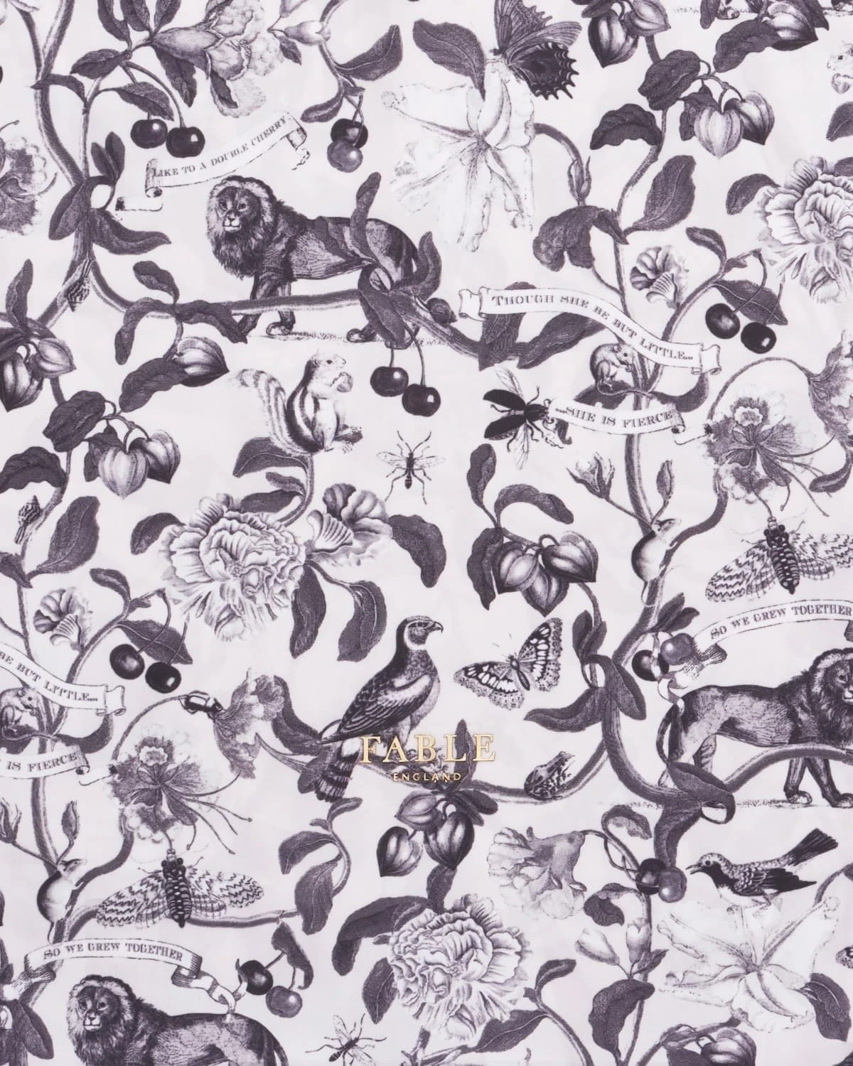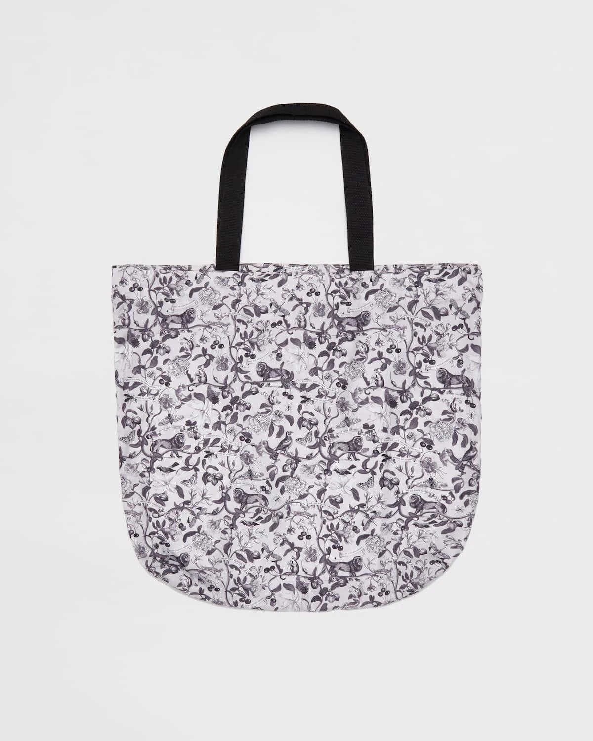 Embrace the charm of story-telling and the Elizabethan era with our folding nylon tote bag featuring the stylish Monochrome print from the Tree of Life collection. Whether foraging in the woods or carrying everyday essentials, this versatile bag is the ideal size. The chic black strap adds a stylish touch to its Shakespearean-inspired design.